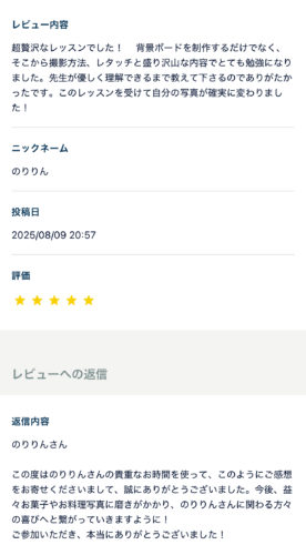 【夏休みスペシャルワークショップご参加の:のりりん様より】